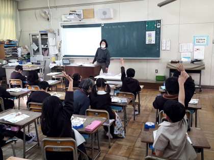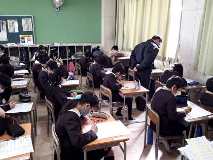 写真は上から1−1,2−2.4−1の様子です。4年生は分数のテストをがんばっていました。