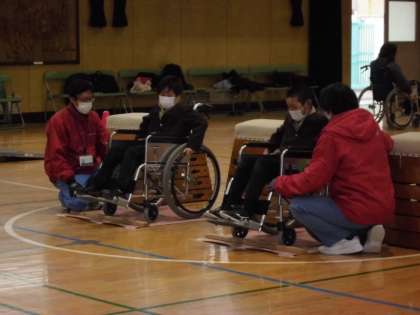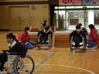 跳び箱の間を狭くして、通ったり、2センチくらいの段差を超えてみたり、思うように動かず苦労しながら、頑張りました。
