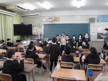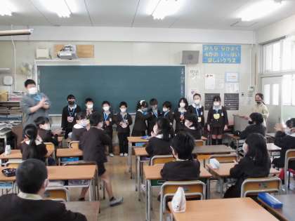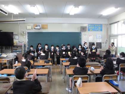 集会委員が、放送でお誕生日の児童の名前を呼び、各クラス呼ばれた児童は前に出て、集会委員から、メダルを受け取りました。