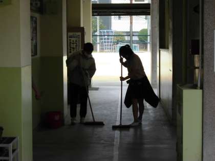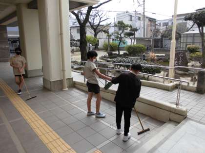 卒業式の前日の様子です。5年生が午後からも残って6年生のために校内をきれいにしてくれました。