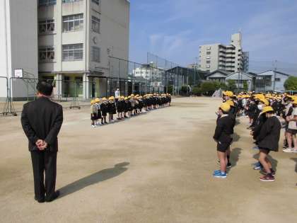 今日から児童朝会にも参加していきます。2年生から6年生のお兄さん、お姉さん、よろしくお願いします。