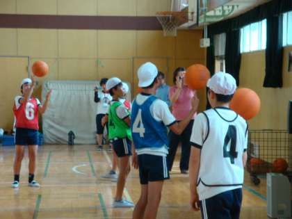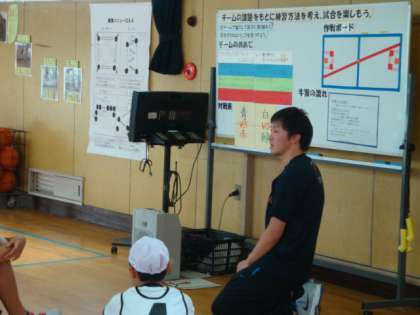 試合後に作戦ボードを使い、真剣に話し合う姿、バスケットボールの試合を楽しむ姿が印象に残りました。