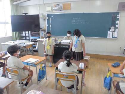 今日のお誕生日集会は、各教室で行いました。集会委員が放送で7月の誕生日の子どもたちの名前を読み上げて紹介し、各教室で誕生日の首飾りをわたしました。