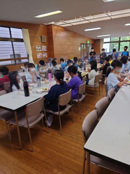 朝の運動のあと、朝食を食べました。おかわりもして元気いっぱいです。