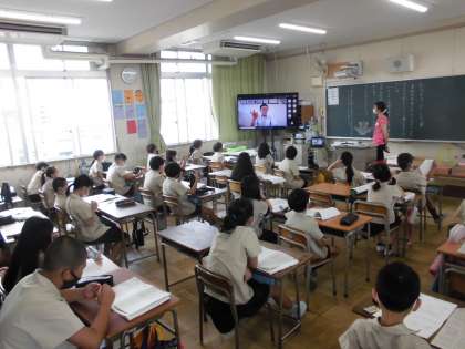 教室では、夏休みにあった出来事、自由研究でつくった作品、夏休みの宿題などを交流しました。休み時間は笑顔で楽しく過ごしている子が多かったです。