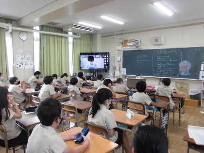 1時間目には、チームズを使ってリモートで始業式を行いました。