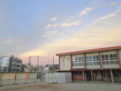 17:45の運動場では、肌寒さを感じます。日も短くなってきました。