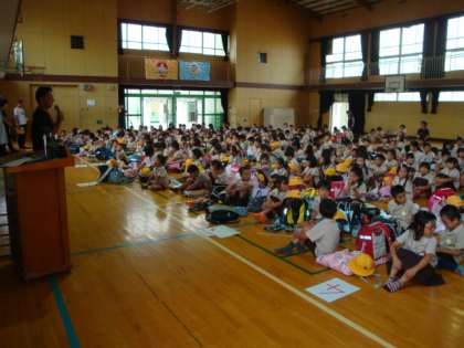 変則ですが、台風11号の接近もあり、5時間目に終業式・集団下校を行いました。