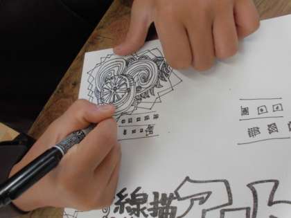 2時間目、図画工作の「線描アート」で、線でいろいろな模様を表現しました。