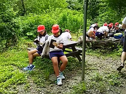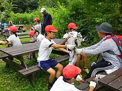 古タオルや歯ブラシで、真っ黒に焼いた板の炭を磨きました。