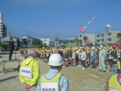 地域の方と子どもたちが、「合同あいさつ」をしました。