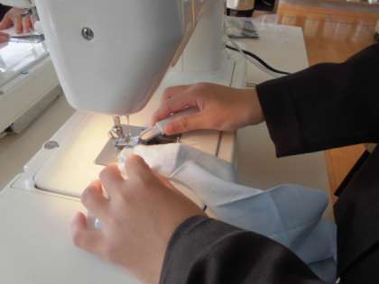 家庭科室で、ミシンを使ってエプロン作りをしました。