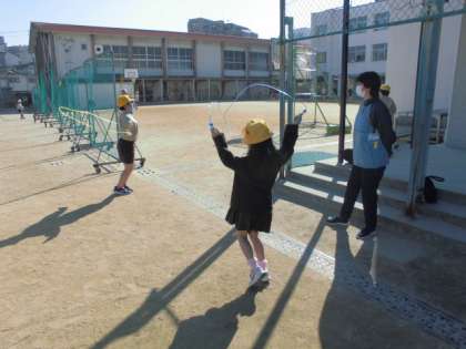 20分休みには多くの子どもたちがなわとびに励んでいます。「ぼく、わたし、上達したよ!」との報告が多く聞かれるようになりました。