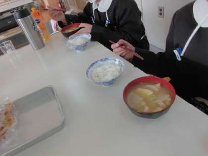 みそ汁の出汁には「煮干し」を使いましたが、煮干しを具として食べる班がありました。「炊いたご飯すごくおいしい」「家でも作ってみる!」と嬉しそうに話してくれました。