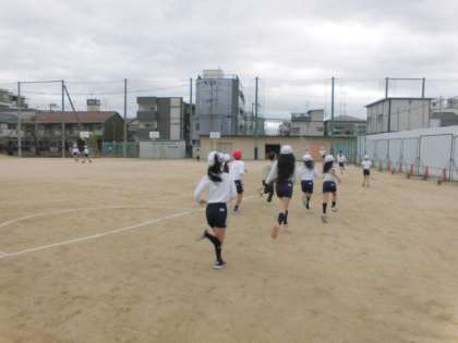 運動場を4分間走してからポートボールをしました。みんながボールを触れるようにドリブルなしにしたり、ボールをまわせるように声を出したり、ルールをつくってゲームをしました。