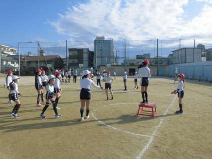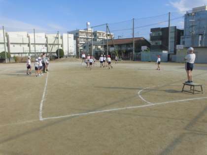 冬の寒さが続いていますが、4年生は運動場で元気に体育をしています。