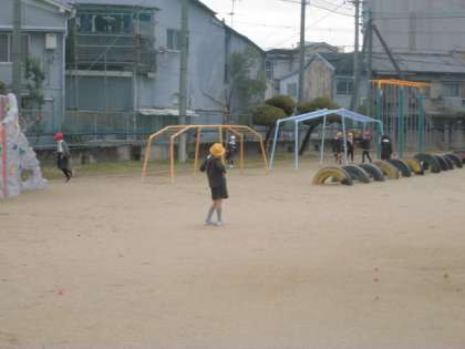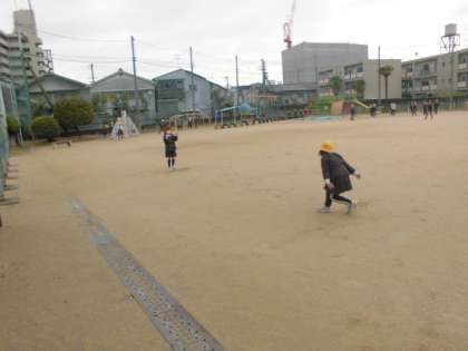 昼休みには、土が乾いたので外で遊ぶことができました。