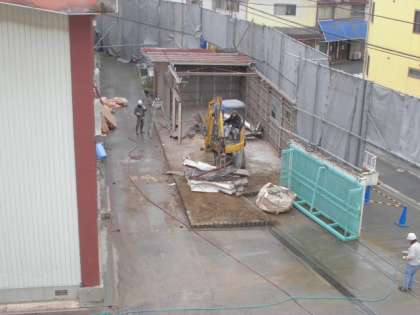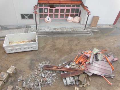 まずは、体育館の横にあった掃除道具倉庫を解体しています。