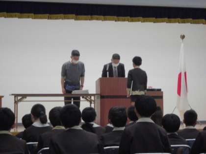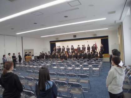 13:55より「さざんか会館」で卒業式の予行を行いました。