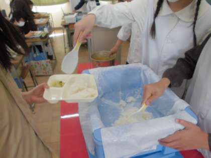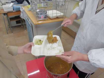 子どもたちは協力し合って配膳をてきぱきとしていました。カレーのお替り「大盛り!!」をペロッといける子がいました。すごい量でビックリしました。