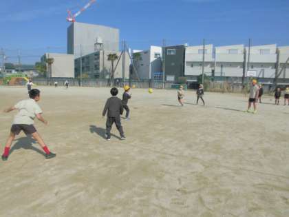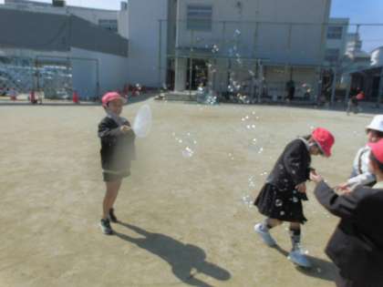 ドッジボールと鬼ごっこ、自分たちで作った「いろはカルタ」遊び、シャボン玉遊び・・・