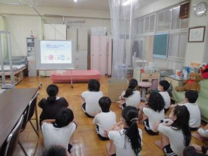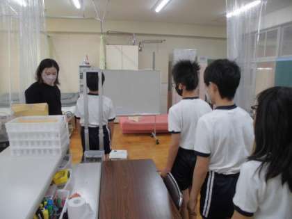 今日は、5、6年生の番でした。測定の前に食物アレルギーのことを学びました。6年生は、静かに落ち着いて保健室に入り、真剣に食物アレルギーのことを学んでいました。