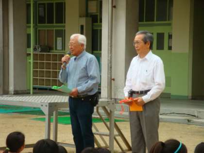 もうすぐ敬老の日ということで、老人会の方々に5年生が書いた手紙を受け取っていただきました。