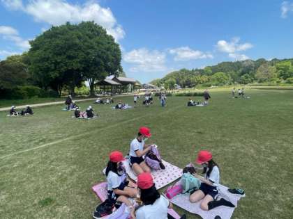全グループ、無事にオリエンテーリングが終わり、石舞台古墳前でお昼ご飯です。