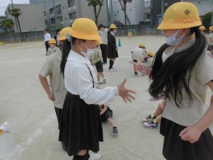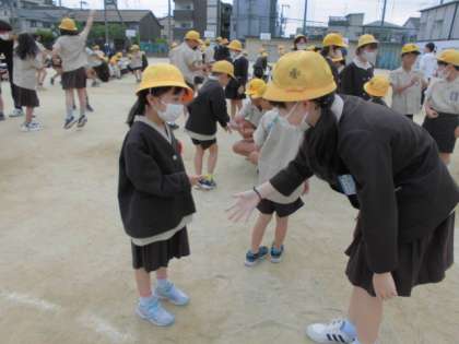 今日の児童集会では「進化じゃんけん」をしました。卵からスタートし、じゃんけんで勝つと「ひよこ、ニワトリ、人間」と進化していきます。年齢を問わずみんなが楽しめるゲームでした。「わたし勝ってばっかり!」「負けた・・・」という声が聞こえました。