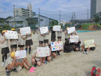 今日の児童集会では、加賀屋フェスティバルのめあて発表とお店紹介をしました。めあては「みんなでなかよく!たのしく!『わくわく!わっしょい!もりあがろう』」です。お店の紹介では、6年生がお店の看板をもって「お店に来てください」のアピールをしました。