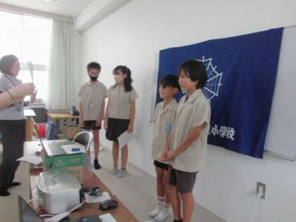1学期最後の児童朝会でした。今日は、読書週間で10冊以上の本を読んだ人を紹介しました。40冊くらい読んだ子もいました!その後、毎月行われている清潔検査で特にがんばったクラスを表彰しました。