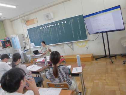 5年生の国語科教科書にある「和の文化を受けつぐ」という教材を使って、国語科で授業を進めるにあたっての「大切なところ・全体の流れ」などを教員の発言をもとに、研修を進めていきました。