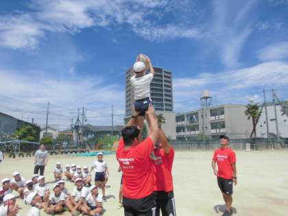 タックルの後に、何人かの子どもたちがラインアウトの体験をしました。
