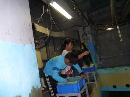 夜はマリンランドに行き、ペンギンタッチをしたり、バックヤードに入り餌をやったりしました。