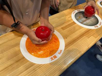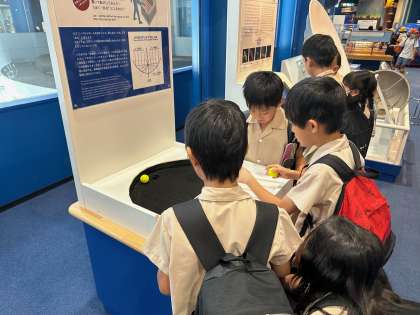 プラネタリウムをみた後、展示室で体験や実験をしました。