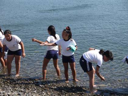 その後、海岸で石投げをしたり自然観察をしたりしました。