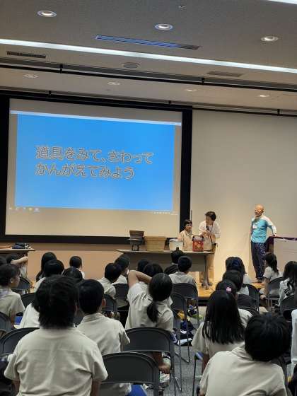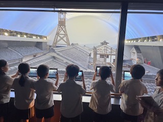 3年生が社会見学へ行きました。扇町公園でお弁当を食べた後、天神橋筋商店街を見学し、「大阪くらしの今昔館」へ入館しました。館の中では、様々な展示を見たり体験学習をしたりして、昔のくらしについて学びました。