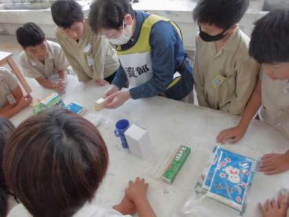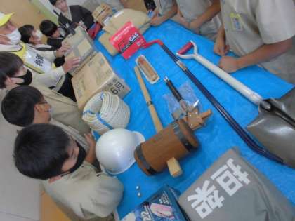 備蓄物資見学では、加賀屋小学校の図工室の横にある備蓄物資を見ました。
