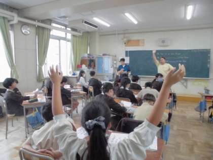 5、6年生の英語の時間のうち、週一回金曜日に外国人の先生が来てくださいます。担任の先生との掛け合いで授業を進めていき、正しい英語の発音を子どもたちが聞くことができるようにします。英語の時間の後、休み時間に子どもたちと楽しくお話ししている様子がよく見られます。