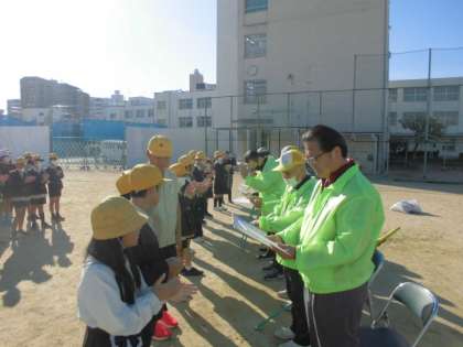 見守り隊の方をお招きし、「見守り隊ありがとう集会」を行いました。毎朝、子どもたちの登校を見守ってくださっている、「見守り隊」の方に感謝の気持ちを伝える会です。児童からは感謝の言葉や全児童が思いを書いた「色紙」を送りました。「見守り隊」の方からも、いろいろな思いを聞くことができました。これを機会に、安全に登校しようという自覚が高まればよいと思います。