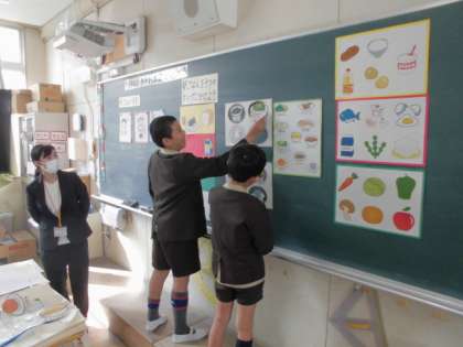 栄養士の先生が来られ、5年生が「1日のスタートは朝ごはんから」について学習しました。食べ物がどんなはたらきをもつか確認し、栄養のバランスに気を付けて自分の朝食を考えました。和食と洋食どちらも工夫された献立ができました。