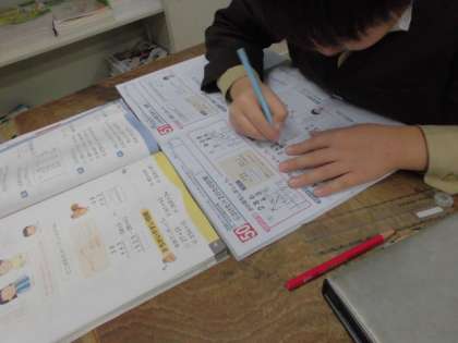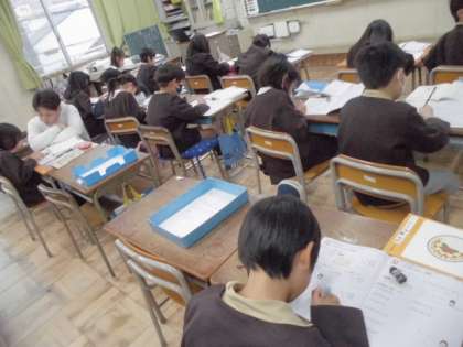 3年生の算数では「二桁×二桁」の筆算のまとめをしました。自分のペースでまとめの問題に取り組んでいました。私語がなく黙々と集中していました。