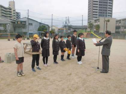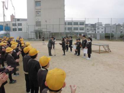 始めに、漢字検定で頑張った児童9名を表彰しました。