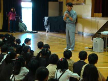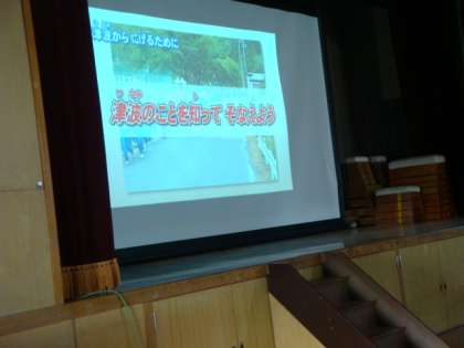津波のビデオを見て、避難訓練をした後、各学年に分かれて消防・防災訓練を行いました。