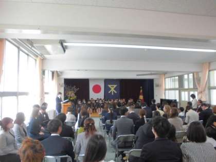 さわやかな春の風が感じられる中、入学式を行いました。かわいく凛々しい新1年生26名が加賀屋小学校の仲間となりました。講堂は工事中なので多目的室で行いました。参加者が近く感じられ笑顔いっぱいの和やかな式となりました。