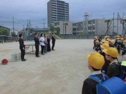 着任式では、加賀屋小学校を出られた教職員、新しく着任した教職員の紹介をしました。詳しくは本日の配付プリントをご覧ください。