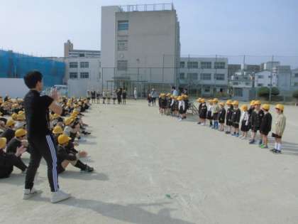 入学した1年生と2年生〜6年生の初めての対面をしました。6年生からお祝いのプレゼント(メッセージ入りのメダル)をもらっている姿は緊張しながらも嬉しそうでした。「これ、もって帰ってもいいのかな?」すぐにメッセージを読んでいる子もいました。来週月曜日から全児童がそろって児童朝会を行います。
