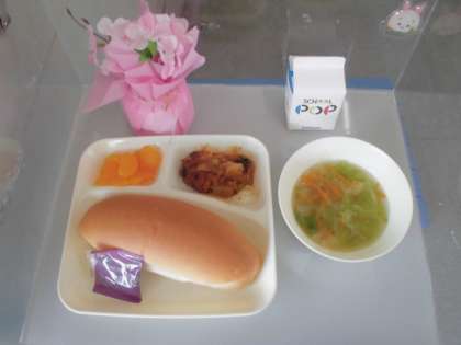 食材には、おもにエネルギーのもとになる黄色の食べ物が4種類、おもに体をつくるもとになる赤色の食べ物が3種類、おもに体の調子を整える緑色の食べ物が9種類使用されています。