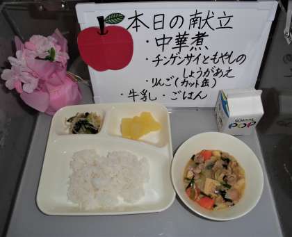 食材には、おもにエネルギーのもとになる黄色の食べ物が4種類、おもに体をつくるもとになる赤色の食べ物が2種類、おもに体の調子を整える緑色の食べ物が9種類使用されています。