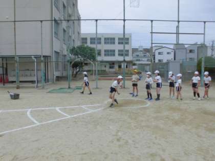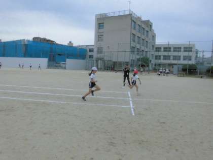 2、4年生の新体力テスト、50m走、ソフトボール投げをしました。4年のソフトボール投げで30mを超す記録が出ていました。50メートル走では、最後まで一生懸命走っていました。